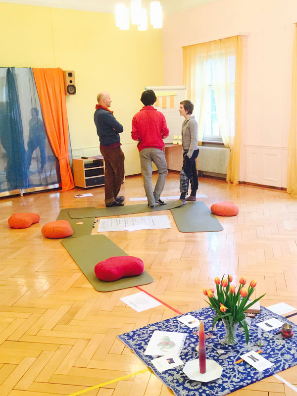- Yogamatten, Stühle, Wolldecken, Meditationskissen